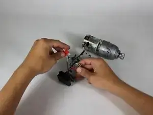 С помощью металлической лопатки разомкните две половины корпуса с задней стороны шуруповёрта. Корпус легче снять, если поддевать с обеих сторон.