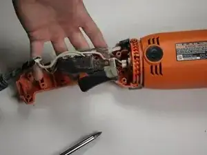 Это руководство поэтапно показывает, как добраться до жгута проводов и удалить его внутри рукояти этой шлифмашины. Это может помочь при диагностике проблем с питанием устройства или при замене неисправной проводки. По мере работы с руководством вы заметите номера, следующие за названиями деталей с заглавной буквы. Это ключевые номера из визуальной схемы, представленной в разделе «Техническое описание/Страница устройства» в подразделе «Дополнительная информация», с подписью «Страница деталей и схема электропроводки». Шаги 1–3 не обязательны для выполнения этой операции, хотя они облегчают работу с инструментом.