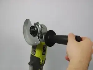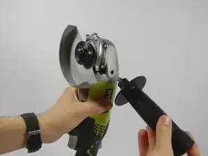 Чтобы снять ручку, держите шлифмашину одной рукой и другой рукой открутите ручку против часовой стрелки.