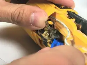 Пружина щетки прижимает щетку к якорю. Пружина может потерять упругость из‑за перегрева. Обязательно отключайте устройство от сети перед ремонтом. Внимательно следите за положением пружины и работайте только с одной пружиной за раз (если Вы забудете её положение, посмотрите на другую).