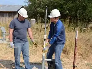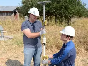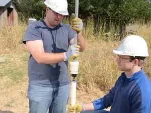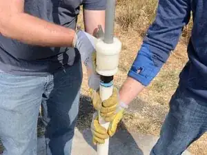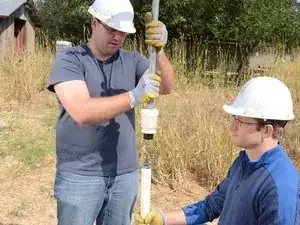 Убедитесь, что кто-то крепко держит нижнюю часть основной штанги, чтобы избежать её падения в колодец.