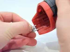 Удалите металлическую скобу, расположенную у основания дрели, где вставляется батарея.