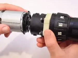 Снимите сборку редуктора из бесключевого патрона, стараясь не позволить шестерням внутри устройства сместиться или выпасть.