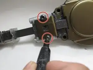 Открутите два небольших чёрных винта Torx с цилиндрической головкой длиной ¾ дюйма с помощью биты Torx T20H и точного битодержателя iFixit.