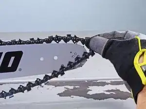 Оттяните цепь от конца шины, чтобы отщёлкнуть её.