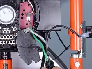 При сборке в обратном порядке сначала пропустите белый провод через блок управления и в блок питания, затем зеленый провод.