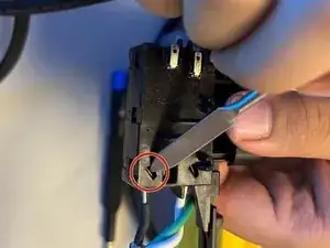 Отсоедините провода, соединяющие сетевой шнур с блоком управления, нажав на защелки с помощью инструмента для снятия изоляции.