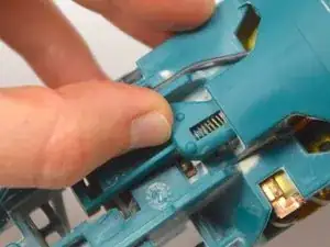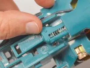 Отожмите пластиковую защёлку и вытяните внутренний выключатель вверх и из полости.
