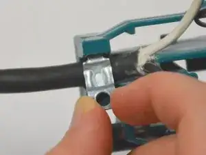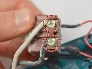 Открутите два винта длиной 10 мм, фиксирующих провода сетевого шнура, с помощью отвёртки Phillips #02.