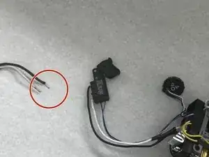 С легким усилием потяните белые и черные провода из механизма курка.
