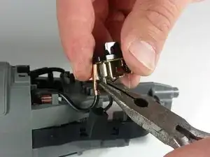 С помощью плоских щипцов аккуратно снимите терминал щетки мотора с рычага щетки мотора.