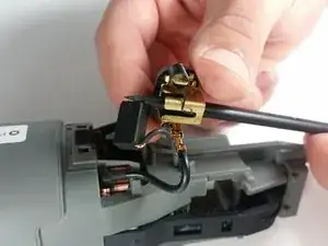 С помощью лопатки аккуратно выдвиньте щетку мотора из рычага.
