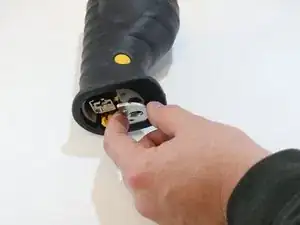 Снимите винт M3x16 мм с головкой T10 с задней части рукоятки. Держите его отдельно от остальных винтов рукоятки.