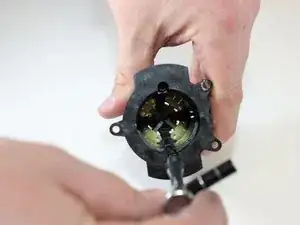 Снимите крышку держателя щёток сверху, оставив нижнюю половину на месте.