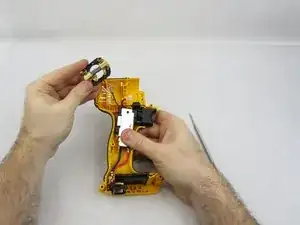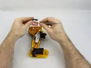 Разведите отверткой два отмеченных соединителя, отсоединяя их от кольцевого узла щёток.