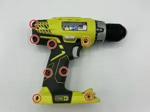 Удалите десять винтов диаметром 13,5 мм из корпуса дрели с помощью отвертки Phillips #2, чтобы получить доступ к внутренностям.