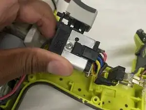 Аккуратно поднимите зажим аккумулятора, чтобы получить доступ к спусковому механизму.