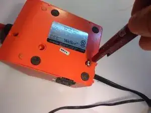 Выверните два винта Phillips #1 длиной 8.6 мм с нижней части паяльной станции.