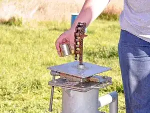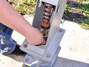 Снимите болт, соединяющий цепь с рукоятью насоса.