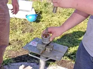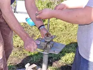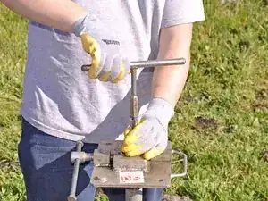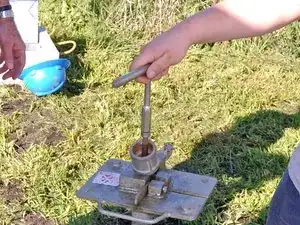 Опустите рукоять насоса до упора и удерживайте в этом положении, оголив насосный шток.