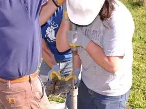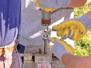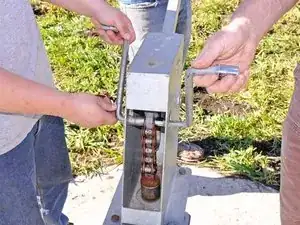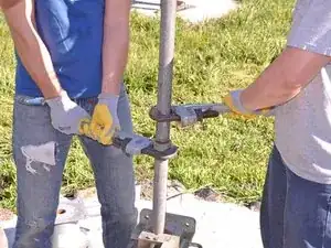 Когда вы доберётесь до муфты трубы, ещё сильнее разожмите зажим, чтобы муфта могла пройти. Поднимите главную обсадную трубу примерно на один фут над зажимом и снова зафиксируйте трубу.