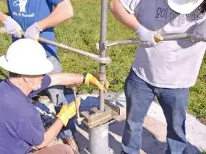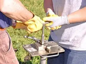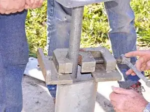 Попросите двоих установить трубные ключи C по обе стороны от главной обсадной трубы.