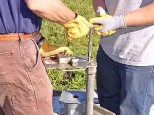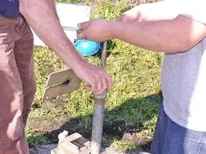 Оттяните верхнюю трубу от насоса и положите её на бок в стороне от насоса.