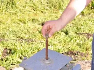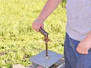 Снимите зажим для штока и медленно опустите Т-образную ручку.