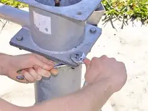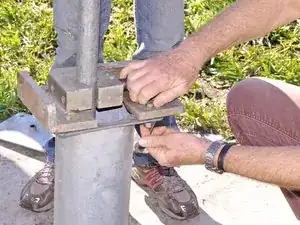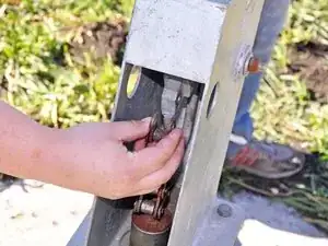Разместите распорку вокруг насосного штока и под точкой крепления цепи.