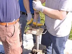 Для подъёма труб потребуется не менее трёх человек. Двое поднимают, и один управляет базовым зажимом. Рабочие должны постоянно сообщать, готовы ли они, поднимают ли сейчас и надёжно ли зафиксирован базовый зажим.