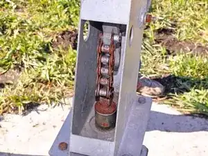 Разведите цепь вбок и используйте её как рычаг, как показано на первой фотографии.