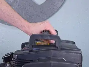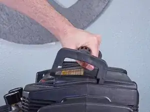 Возьмитесь за ручку так, как если бы собирались поднять компрессор. Поднимите её вверх и одновременно потяните вперёд, в сторону от манометров, чтобы повернуть ручку вверх и снять с корпуса.