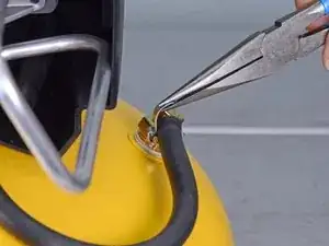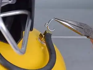 Используйте круглогубцы, чтобы отогнуть хомут обратного клапана вверх, от шланга.