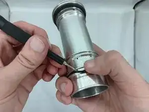 Возьмите крючок для уплотнительных колец или плоскую отвёртку и аккуратно подденьте наконечником уплотнительное кольцо.