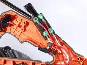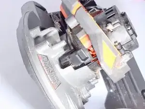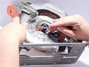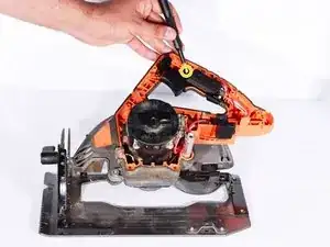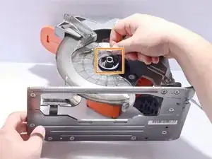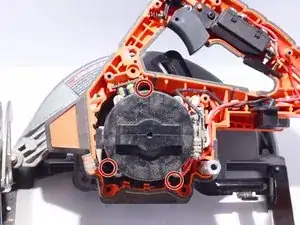 В этом руководстве показано, как заменить неисправный узел блокировки шпинделя. Симптомы неисправного или забитого узла блокировки шпинделя — невозможность остановить вращение диска менее чем за один полный оборот, либо если блокировка шпинделя не позволяет диску свободно вращаться после отпускания (заедание). Для получения дополнительной информации ознакомьтесь с нашим руководством по устранению неполадок. Перед началом снимите внутреннюю втулку фланца, рычаг глубины реза и верхнюю крышку, следуя руководству по внутренней втулке фланца и шагам 1–5 в руководстве по узлу переключателя.