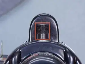 Ослабьте ручку кожуха ремня настолько, чтобы можно было сдвинуть кожух ремня вперед по направлению к передней части прочистителя.
