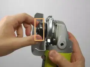 Поднимите защёлку кожуха шлифовальной машины. Убедитесь, что защёлка полностью ослаблена, прежде чем продолжать.
