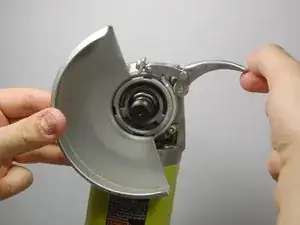 Снимите шлифовальный/режущий диск, просто сдвинув его со шпинделя.