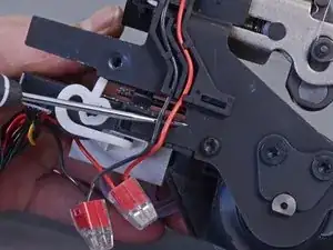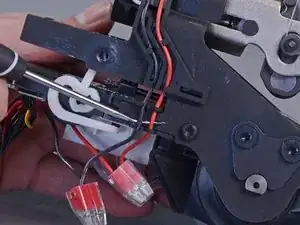 Удерживая лопатку внутри, потяните красный провод соленоида из разъема.