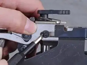Поднимите фиксатор спускового крючка, чтобы снять его.