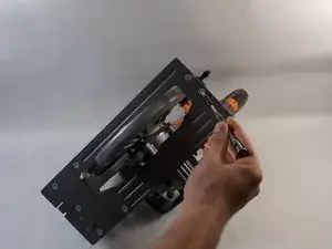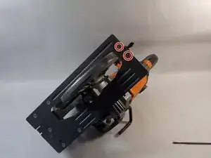Используя отвертку Torx T20, снимите два винта длиной 4 см, крепящих основание верхнего кожуха лезвия к основному корпусу.