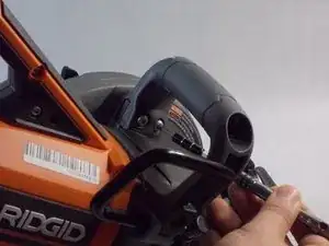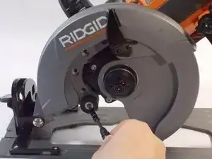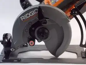 Убедитесь, что вы можете легко снять верхний кожух лезвия, маневрируя пилой RIDGID.