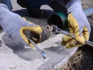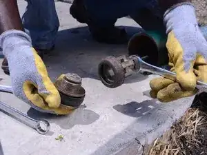 Отложите штуцер в сторону, чтобы ничего не повредить.