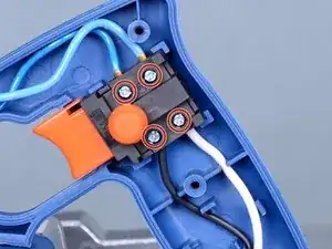 Выключатель не закреплен в корпусе; обязательно держите его на месте при снятии проводов мотора и сетевого шнура.