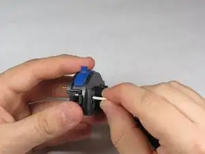 Снимите два провода с задней части выключателя, соединяющие шнур с выключателем: вставьте тонкий металлический пинцет в отверстие рядом с проводами и вытяните пинцет и провод вместе.