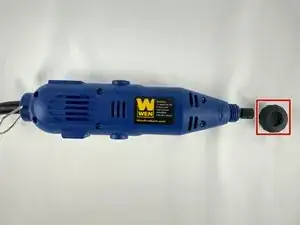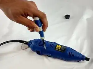 Нажимая на кнопку блокировки шпинделя, открутите гайку патрона и снимите её вместе с латунным патроном.