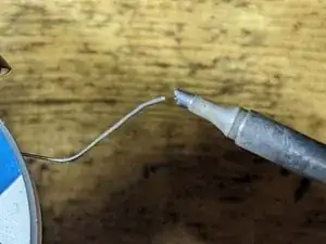 Нанесите небольшое количество припоя на жало паяльника. (Фото 2)
