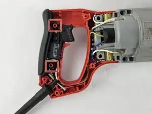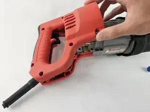Отключите Sawzall от сети и разверните правую половину рукоятки так, чтобы она была обращена вверх.