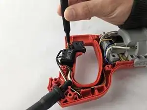 Курок вместе с проводом корпуса мотора требует двух изъятий.