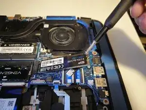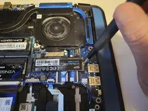 Выверните фиксирующий винт, который удерживает SSD на материнской плате, с помощью отвёртки Phillips #0.